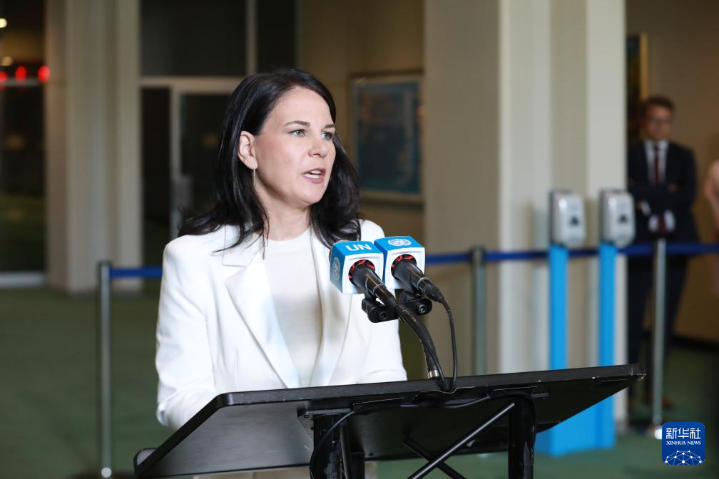 安娜萊娜·貝爾伯克當選第80屆聯大主席后向媒體發表談話。